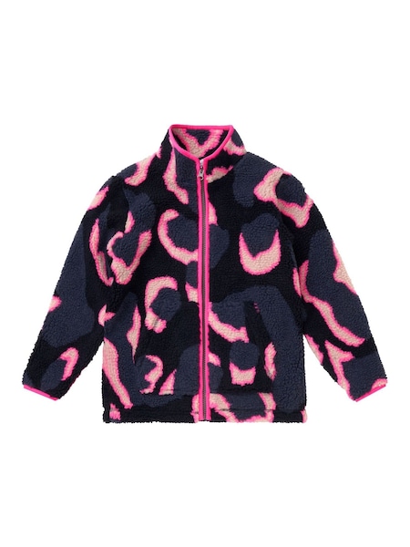 Blue Kids Funnel Neck Button Through Fleece Jacket Mega Shadow Leopard & Lightning Bolt