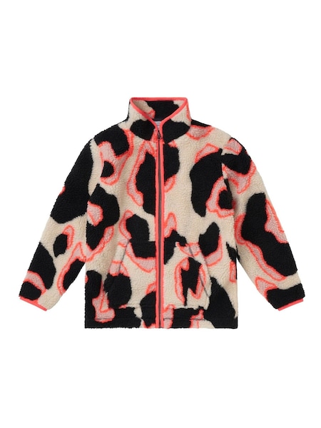 Cream Kids Funnel Neck Button Through Fleece Jacket Mega Shadow Leopard & Lightning Bolt