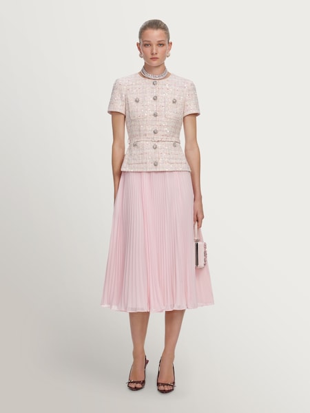 Pink Sequin Boucle Tailored Midi Dress