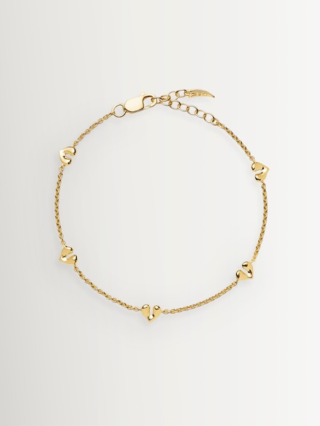 Gold Tone Molten Heart Mini Charm Bracelet