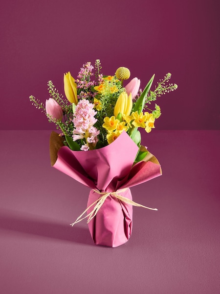 Pink/Yellow Spring Posy Fresh Flower Bouquet With Vase