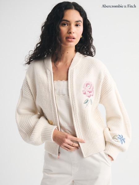 Abercrombie & Fitch Cream Needlepoint Floral Jumper Jacket