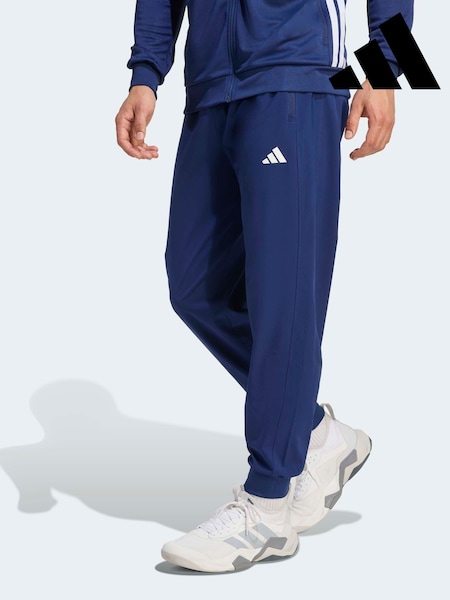 adidas Blue Workout Essentials All-Set 3-Stripes Knit Joggers