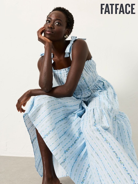 FatFace Martha Blue Petite Stripe Midi Dress