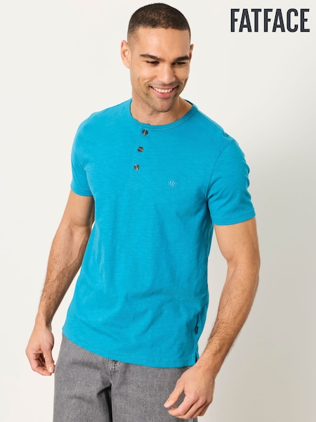 FatFace Turquoise Blue Short Sleeve Woodside Henley