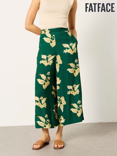 FatFace Eliza tonal leaves Green Wide Leg Cropped Trouser