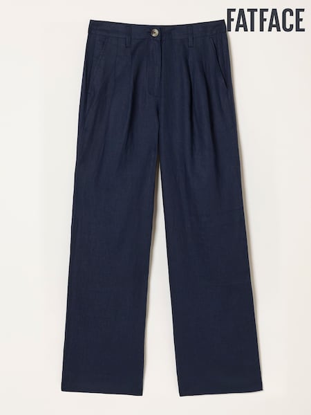 FatFace Navy Wide Leg Linen Trousers