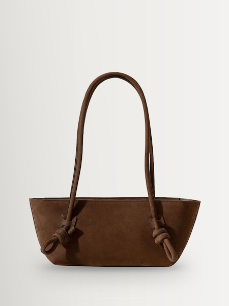 Hereu Studio Brown Fleca Nobuck Baguette Shoulder Bag With Knotted Handle Detail