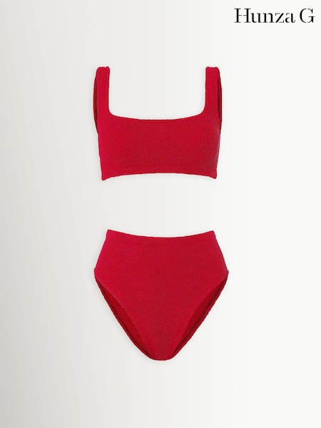 Hunza G Red Patricia Square Neck High Waist Bikini