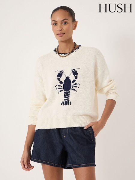 Hush Natural Hallie Crew Neck Lobster Graphic Knitted Jumper