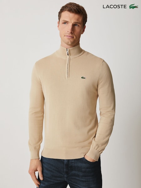 Lacoste Cream Regular Fit High Zipped Neck Sweater