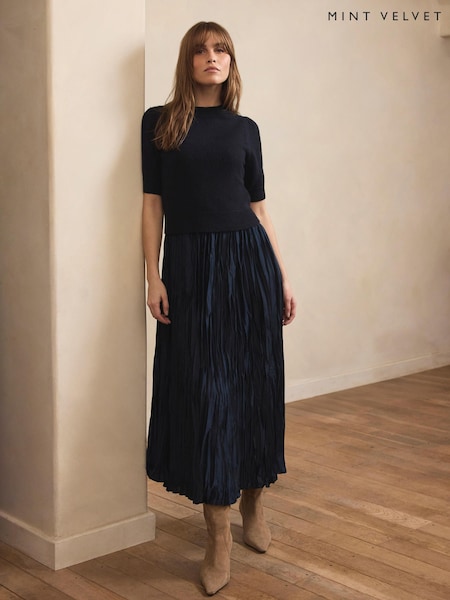 Mint Velvet Blue Knit Sleeveless Midi Dress