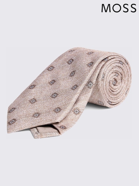 MOSS Cream Medallion Silk & Linen Tie