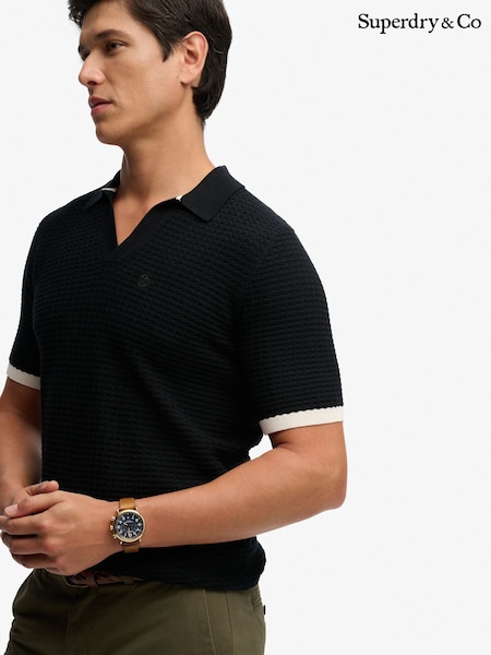 Superdry Black Johnny Collar Knitted Polo Shirt