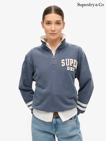 Superdry Blue Athletic Essentials Appliqué Half Zip Sweatshirt