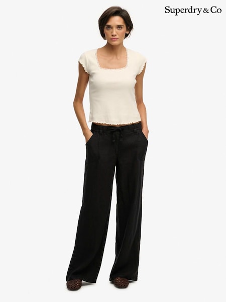 Superdry Black Linen Low Rise Pants