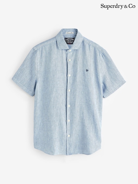 Superdry Blue Riviera Short Sleeve Linen Shirt