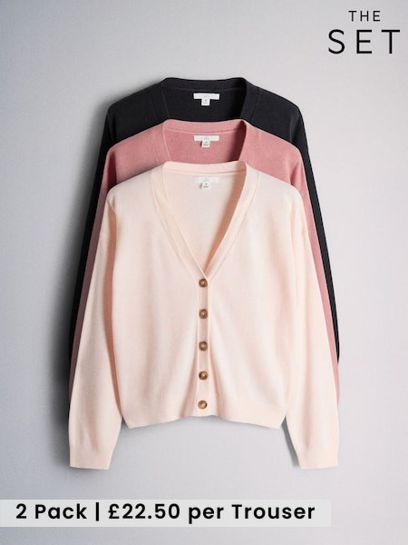 The Set 2 Pack Soft Touch Ribbed Long Sleeve Cardigan Pink/Cream
