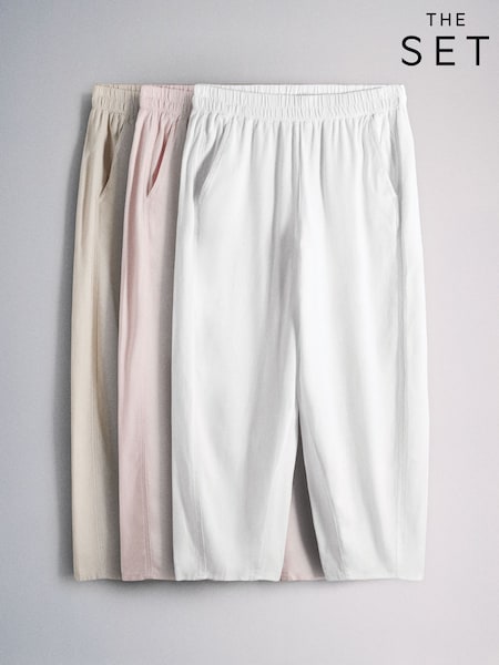 The Set 3 Pack Barrel Leg Trousers with Linen White/Pastel Pink/Pastel Yellow