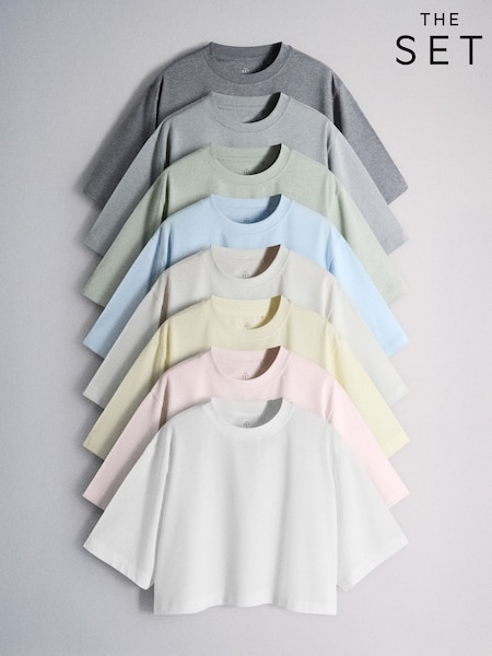 The Set 8 Pack Essential Short Sleeve Cropped Boxy T-Shirts Grey/Blue/Green/Neutral/Pink/White