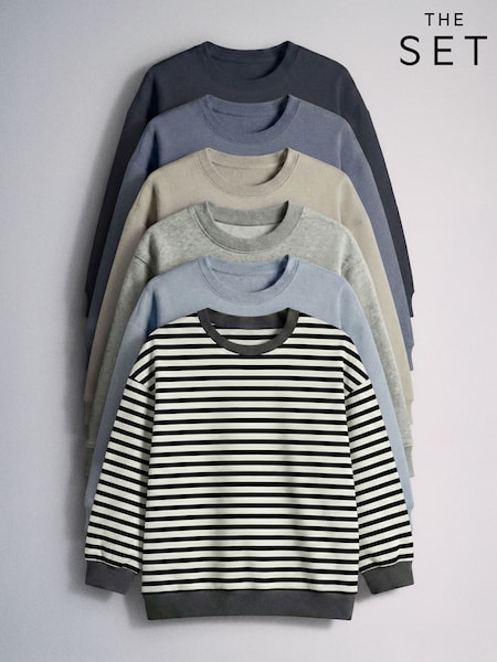The Set 6 Pack Sweat Tops Navy/Blue/Light Blue/Grey Marl/Stripe