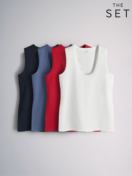 The Set 4 Pack Deep Scoop Slim Fit Vest Red/Navy Blue/ White
