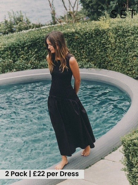 The Set 2 Pack Shirred Sleeveless Maxi Dress Chocolate Brown/Off White