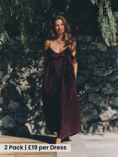 The Set 2 Pack Ruffle Trim Strappy Maxi Dresses Black/Burgundy Red