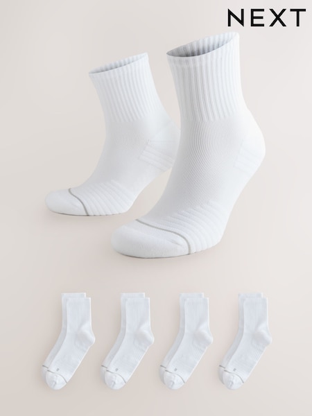 White Active Cushioned Sports Socks 4 Pack