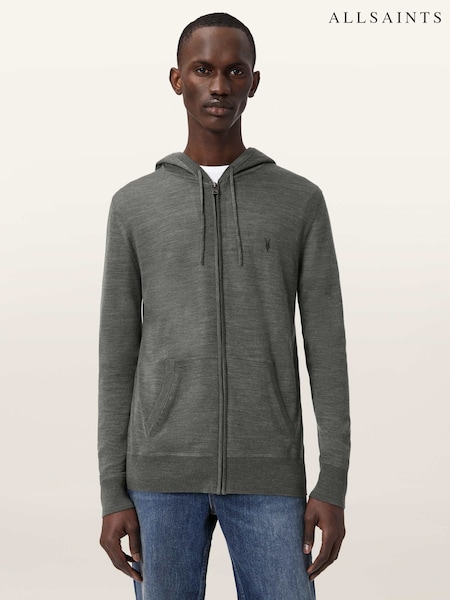 Allsaints Green Mode Merino Wool Zip-Up Hoodie