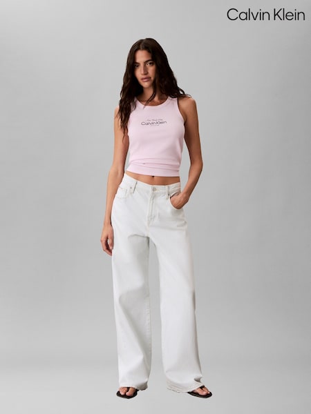 Calvin Klein Pink Slim Ribbed Cotton Tank Top