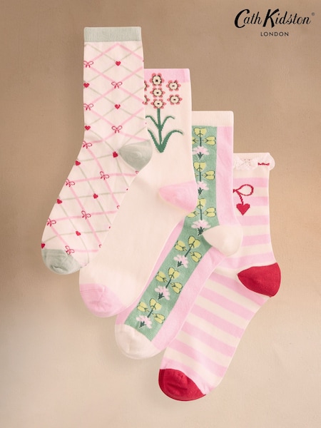 Cath Kidston Pink Flower Market 4 Pack Socks