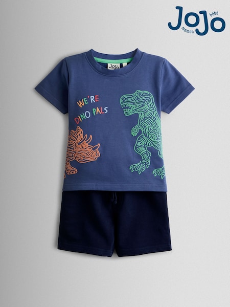 JoJo Maman Bébé Blue 2-Piece Dino T-Shirt & Shorts Set