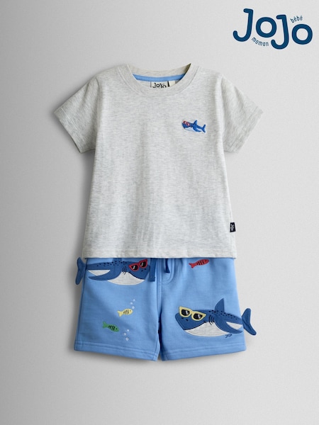 JoJo Maman Bébé Light Blue Shark 2-Piece T-Shirt & Shorts Set