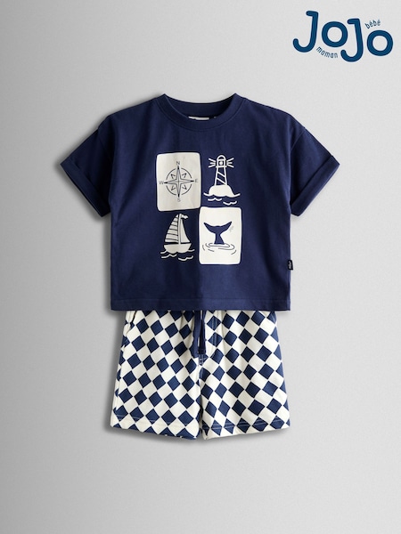 JoJo Maman Bébé Navy Nautical Printed T-Shirt & Shorts Set