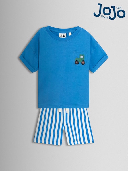 JoJo Maman Bébé Blue Tractor 2-Piece T-Shirt And Shorts Set