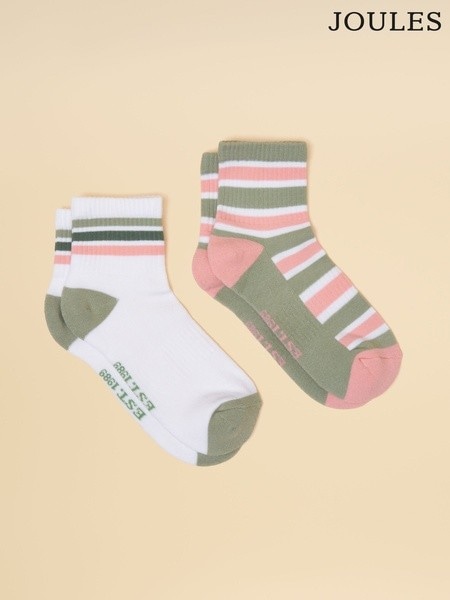 Joules Women's Volley Green Pink Tennis Sock 2 Pack (size 4-8)