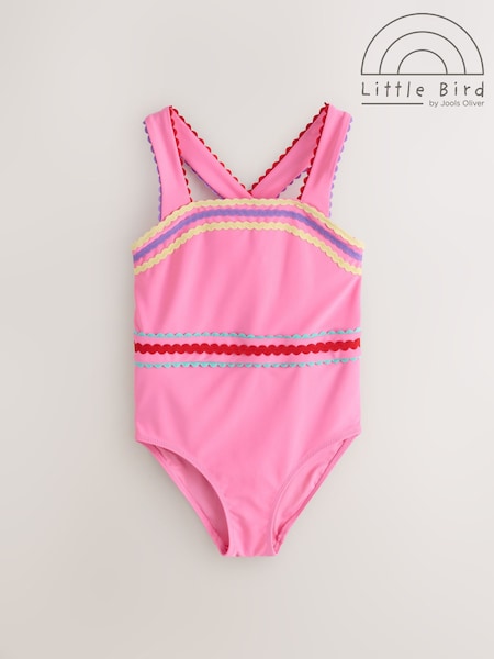 Little Bird by Jools Oliver Pink Ric Rac Cross Back Swimsuit