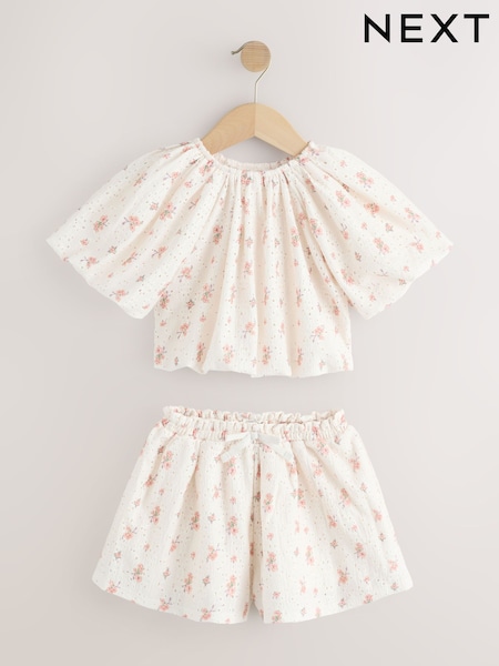 Ecru Ditsy Floral Broderie Bubble Shorts Set (3-16yrs)