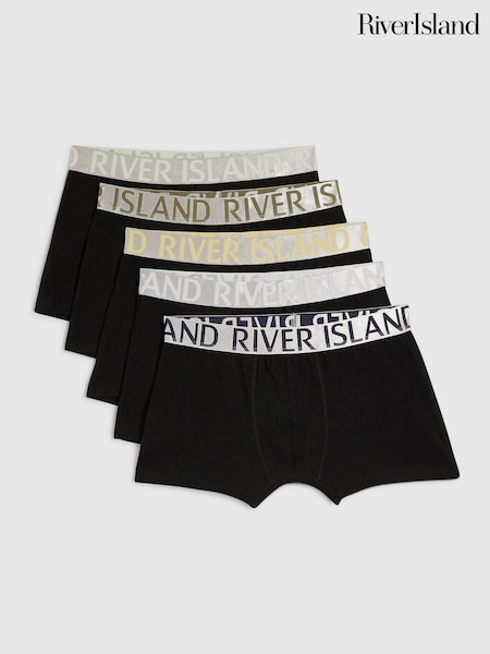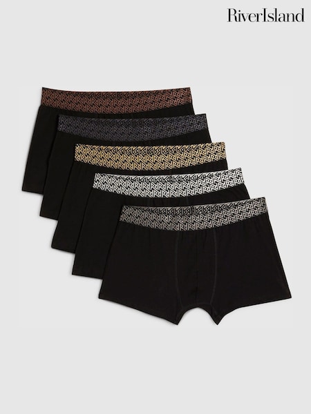 River Island Black RR Metallic Logo Waistband Trunks 5 Pack