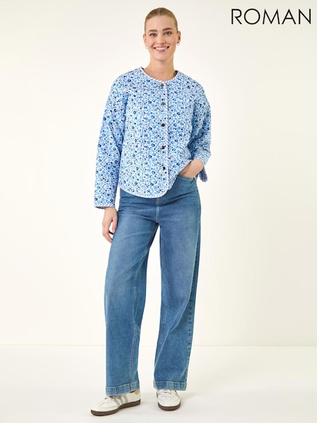 Roman Blue Floral Quilted Jacket