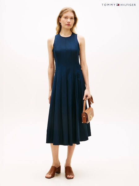 Tommy Hilfiger Blue Linen Blend Midi Dress