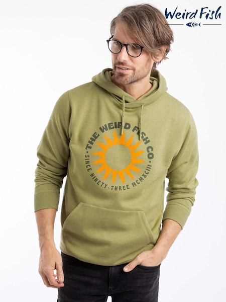 Weird Fish Green Bryant Front Print Graphic Popover Hoodie