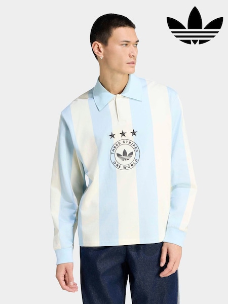 adidas Originals Blue/Ecru LS Striped Polo