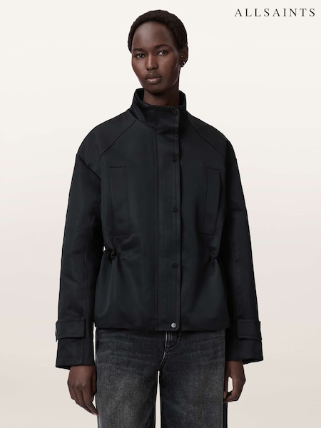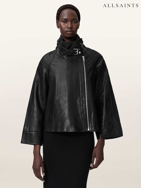 AllSaints Black Ryder Black Funnel Neck Leather Jacket