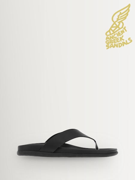 Ancient Greek Sandals Black Charys Footbed Leather Black Open Sandals