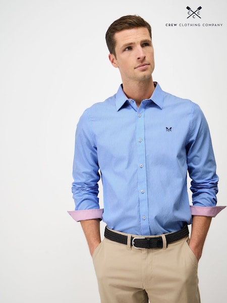 Crew Clothing Company Blue Crew Neck Classic Micro Stripe Shirt