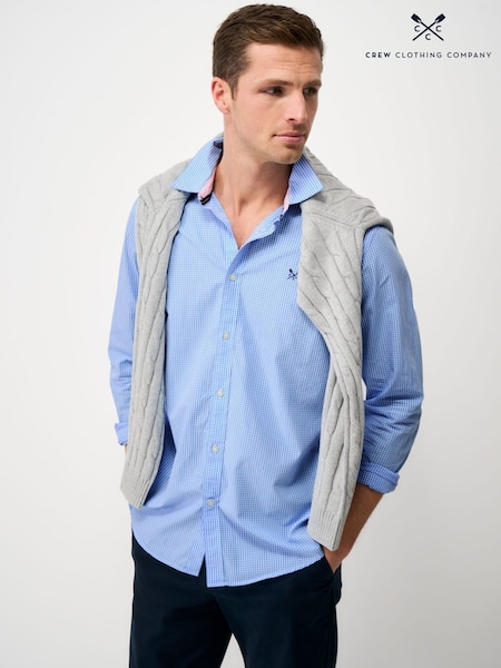 Crew Clothing Company Blue Crew Neck Classic Micro Gingham Shirt