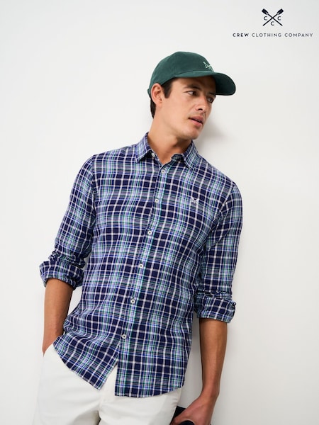Crew Clothing Blue Long Sleeve Linen Check Shirt