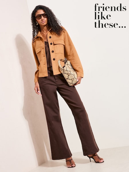 Friends Like These Brown Tan Faux Suede Pocket Front Button Jacket